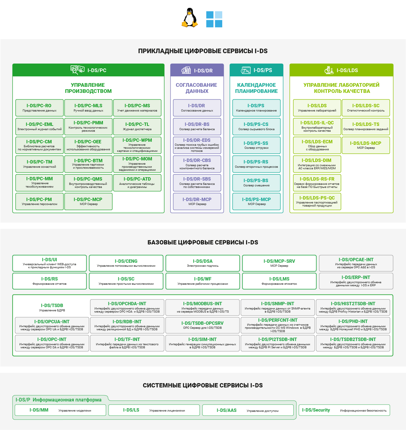 - I-DS/LDS-DIM – Интеграция со смежными AC класса ERP/MES/MDM